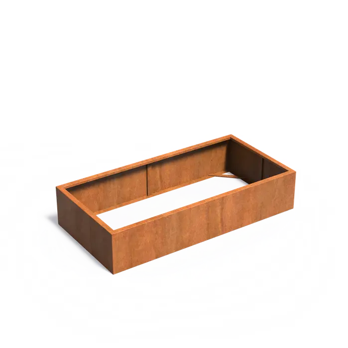 De plantenbak zal dus nooit doorroesten. Er zijn vele modellen vierkante plantenbakken van cortenstaal beschikbaar. De bakken worden in blank cortenstaal geleverd. Na ca 2 weken heeft het een beschermende roestlaag.