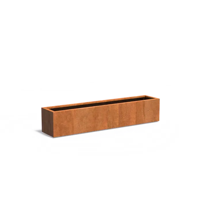 De plantenbak zal dus nooit doorroesten. Er zijn vele modellen vierkante plantenbakken van cortenstaal beschikbaar. De bakken worden in blank cortenstaal geleverd. Na ca 2 weken heeft het een beschermende roestlaag.