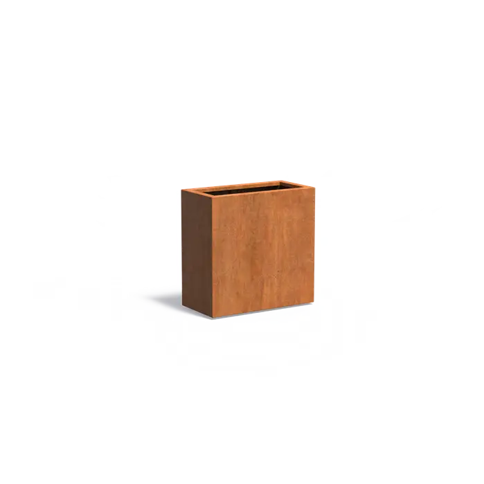 De plantenbak zal dus nooit doorroesten. Er zijn vele modellen vierkante plantenbakken van cortenstaal beschikbaar. De bakken worden in blank cortenstaal geleverd. Na ca 2 weken heeft het een beschermende roestlaag.